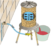 the mash, to completely envelope it. If this is not done properly then mash will squeeze out below the sack. Note: a few people have used air instead of water to inflate the bladder, this is NOT permitted with water-powered hydro-presses. I can supply a water recycling system for saving water, instead of wasting mains water; details are at the end of this webpage. Lancman hydro-presses: with one green press sack included:- Female hose-tail-connectors are fitted: for 13 mm (½") internal diameter hose on the inlet (water supply from a tap or recycling system; 'garden hose'