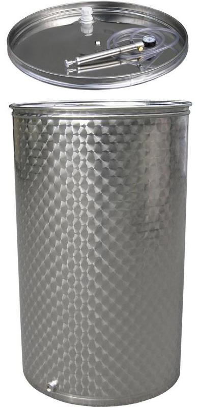 Variable Capacity tanks, for fermentation and storage, are 'always full' due to the separate pneumatically sealed inner lid which can be set at any height within the tank; The pneumatic sealing tube is pumped up (to 0.5 bar) with a small hand pump rather like a bicycle tyre pump. Volume calculations, measurements should be accurate to 0.1 cm :- Note: cleaning the tanks. New Variable Capacity tanks:- Vertical cylinders with flat bottom or concave bottom; flat bottom tanks can be placed on a small pallet, which can be moved around with a pallet-truck. IND Italian, excellent value:-