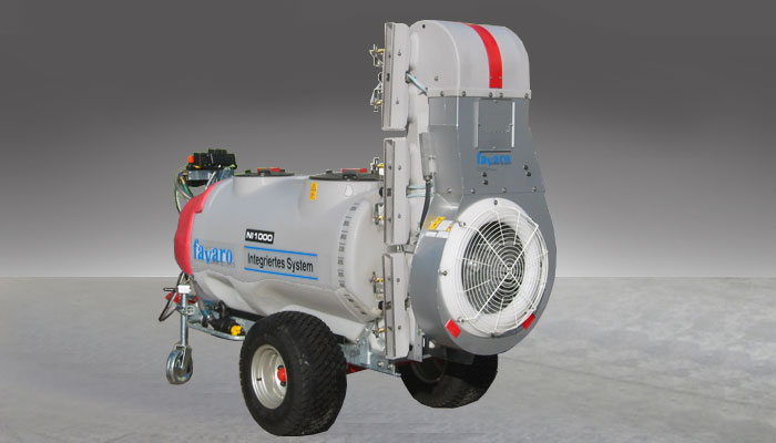 Favaro OVS25: with two independently adjustable counter-rotating turbines, for row widths 1.6 to 4.0 metres, leaf-wall height up to 4.0 metres:-