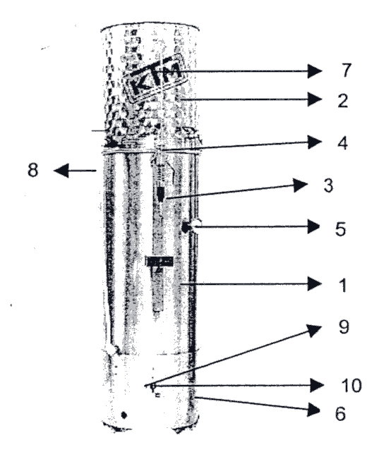 8. Hose connection from juice container to the heating tube (inside the water