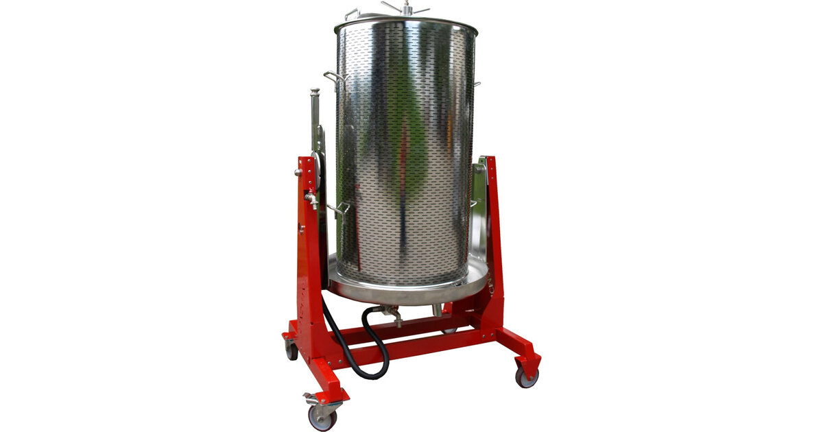 These are vertical presses which will produce a clearer juice (or red wine) than large horizontal presses. They are also very good for milled apples, pears and also soft fruit. A vertical press will work well when at least a quarter full. If you have less grapes than this I would still de-stalk the bunches but put the